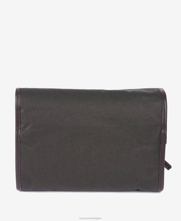Men Olive Barbour Wax Hanging Washbag 40VB2183