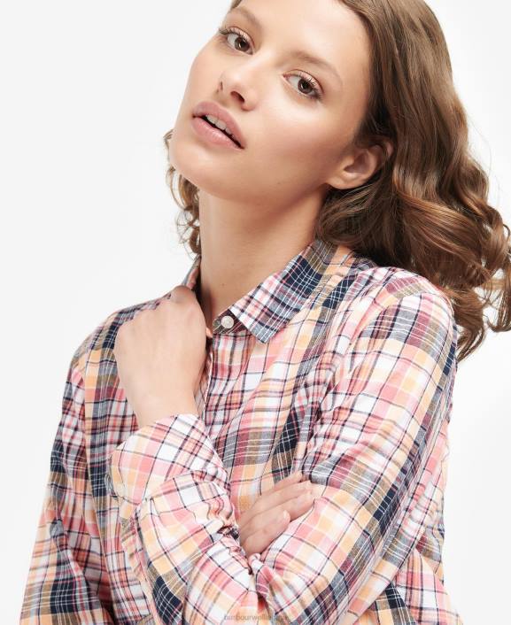 Women Navy Check Barbour Seaglow Shirt 40VB1633