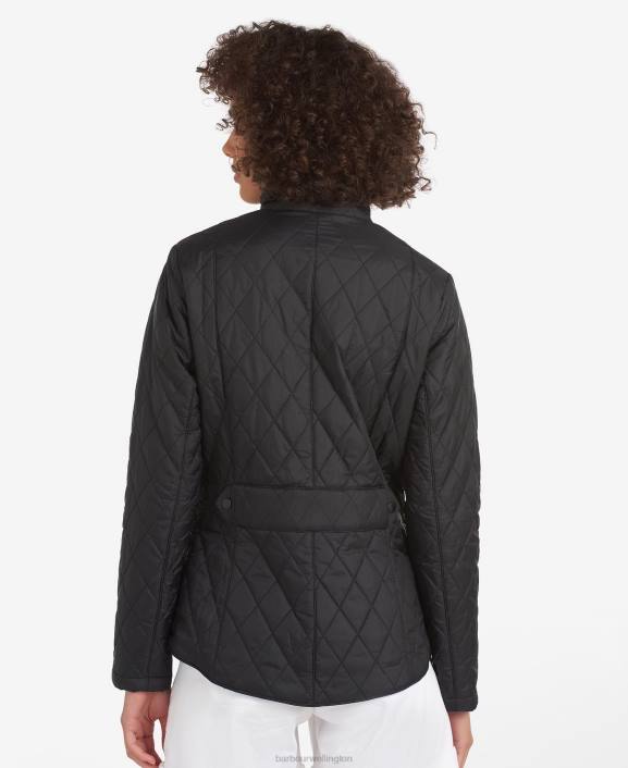 Women Black/Stone Barbour Flyweight Cavalry Quilted Jacket 40VB1414