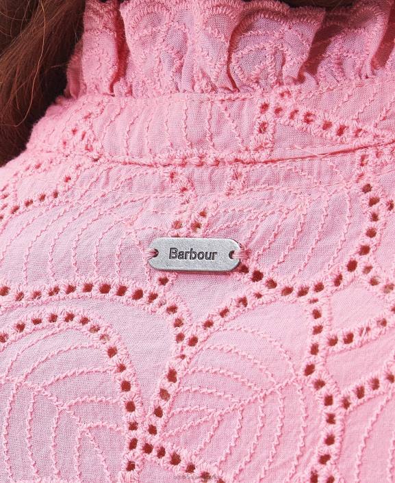 Dare to be bold with the Barbour Palmetto midi dress. Boasting a contemporary take on broderie anglaise with a hibiscus palm inspired detail, complemented with voluminous short sleeves, a delicate frill collar and notch neckline for a playful take on summer dressing.