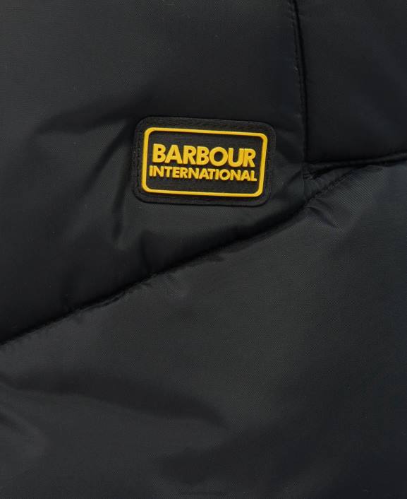 The Barbour International Marathon Gilet boasts a longer length design with shiny panels to the hood and yoke for premium attention to detail. Perfect for an athletic inspired look, this gilet features two lower pockets and is finished with a branded badge to the left side.