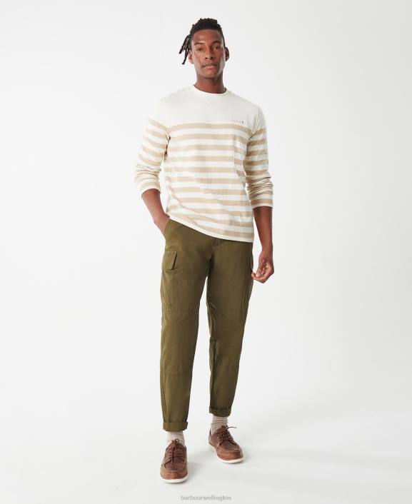 Men Burnt Olive Barbour Firthmoor Stripe Crew 40VB1011
