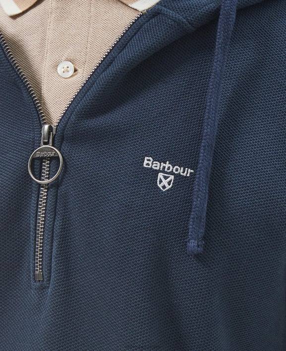 Men Classic Navy Barbour Haverigg Half Zip Hoodie 40VB985