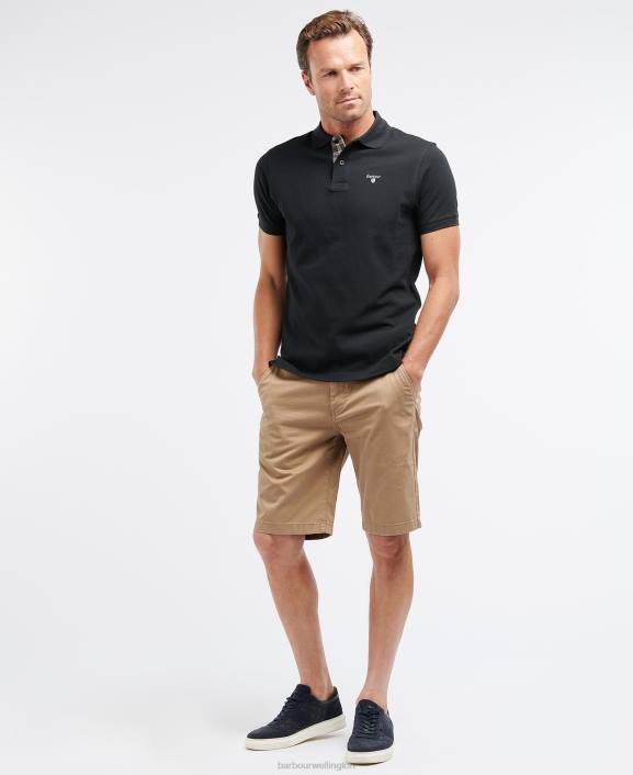 Men Sandstone Barbour Tartan Pique Polo Shirt 40VB573