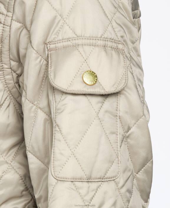 Updating the iconic Barbour International design for a regular fit, this quilted jacket features a diamond-quilted outerl. Four studded pockets, a funnel collar with neck strap, a sleeve pocket and shoulder patches retain the authentic biker-jacket look, while a buckle-close belt creates a flattering silhouette.